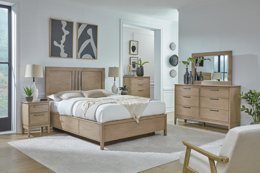 Complete the look with matching nightstands, dressers, and chests that echo the same minimal aesthetic. Graphite hardware and full-extension drawers add modern function to each case piece, while the neutral finish options tie everything together beautifully.