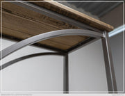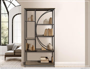 The Zandria Bookcase takes cues from post-modern design, using solid pine wood for its tops and shelves. The alluring craftsmanship is accentuated by a handmade metal base featuring semicircle shapes, resulting in a sophisticated and modern look. Constructed from durable poplar wood and featuring a light brown lacquer finish, this Zandria Bookcase showcases exceptional craftsmanship. With its stable mortise and tenon construction and four spacious shelves, it is both functional and visually appealing. The sleek blacksmithing frame in a silver finish adds a touch of modern elegance.
