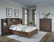 The furniture is constructed in traditional fashion, yet still maintains a modern look by incorporating current colors and styles. Crafted from environmentally-friendly American Alder hardwood, it utilizes full extension metal ball bearing drawer slides and English dovetail drawer construction for smooth operation. The use of mortise and tenon joinery ensures durability and stability throughout usage. Additionally, dust bottoms are included in all cases and fitted backs provide structural strength. The feet are equipped with adjustable levelers for even placement. Available finishes are showcased on all pieces. As an added safety measure, chests and dressers have an anti-tip mechanism compliant with ASTM standards to prevent tipping.