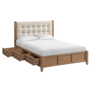 Made of sustainable American Alder hardwood. Mortise and tenon joinery for strength and stability. Bed Includes six English dovetail full extension drawers. Fitted backs for structural strength. Adjustable levelers on feet. Available only with finishes shown in queen and king sizes.