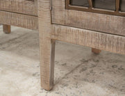 A hand-rubbed, distressed brown finish is applied through a meticulous multi-step process, highlighting the natural grain and texture of the wood while giving it a softly weathered charm. Built with mortise and tenon joinery for lasting durability, this console also features magnetic catches for easy door operation and custom metal handles with a non-chip finish. Whether placed in a living room, dining area, or entryway, the Mandala Console brings sophistication and artisan quality to your home.