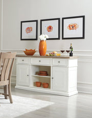 The Sturbridge Buffet showcases classic cabinetry and generous storage, giving you room to organize—and display—your dining essentials in style.