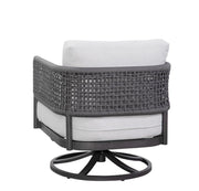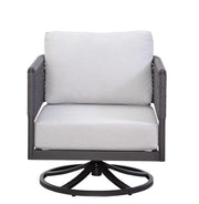 he Olympic Outdoor Living Collection features a rust-proof, powder-coated aluminum frame and woven Abaca Rope, the strongest of all natural fibers. Available in black Abaca Rope and equipped with quick-dry, fade-resistant cushions, this collection offers both durability and style. Priced for the swivel chair only, additional pieces sold separately.