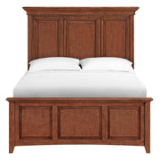 Made of sustainable American Alder hardwood. Mortise and tenon joinery for strength and stability. Fitted backs for structural strength. Adjustable levelers on feet. Available only with finishes shown in queen and king sizes. Dentil detailing on headboard.
